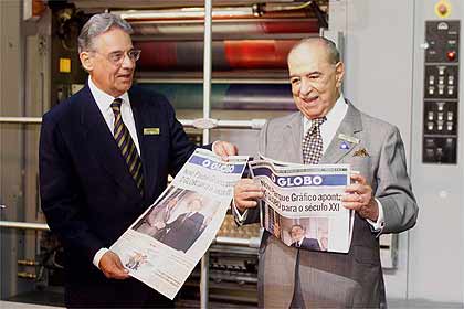 FHC e Roberto Marinho no Parque Gráfico no município de Duque de Caxias, à margem da rodovia Rio-Petrópolis: