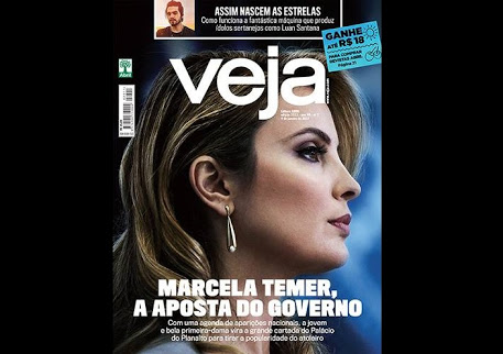 Mas nenhum tão pinguela como Temer. Agora mesmo: como mostra a capa da Veja ele parece apostar na beleza de Marcela para elevar a miserável taxa de popularidade de seu governo.