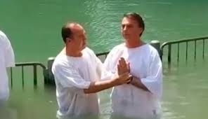 | Bolsonaro, em maio/2016, 'virou' evangélico, 'batizado' nas águas do rio Jordão, em Israel. |
