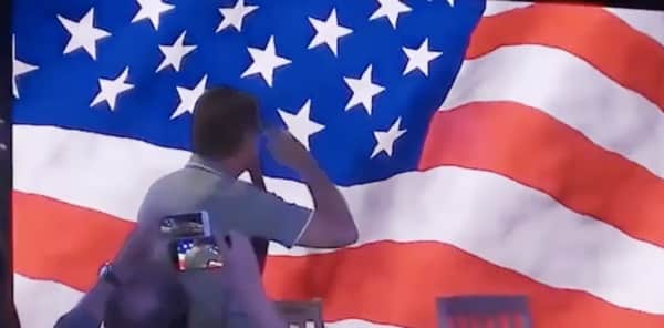 | Bolsonaro, sabujo, prestando continência à bandeira norte-americana em Miami(2018)