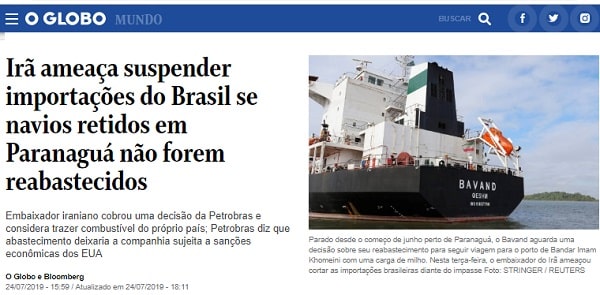 Num raríssimo pronunciamento, o embaixador do Irã no Brasil, Seyed Ali Saghaeyan, disse que, diante das negativas do Brasil em abastecer os cargueiros iranianos que estão com uma enorme carga de milho comprado aqui nos porões, impedidos de zarpar, que “talvez as autoridades em Teerã possam tomar alguma decisão porque este é um mercado livre e outros países estão disponíveis”. ➤ Tradução direta: vamos comprar em outra freguesia, fácil de achar. E, claro, o Brasil terá de vender para outros fregueses, nem sempre tão disponíveis. Um país não pode colocar seus interesses comerciais a serviço de ideologias, não é isso que os liberais vivem dizendo? ➤ Seria pouca coisa? No caso, informa O Globo, “os iranianos são responsáveis por comprar um terço de todas as exportações brasileiras do produto”. Teremos adotado o “Comércio com Partido”? ➤ Lamento informar, mas não iremos vender esse milho para os EUA, que são também exportadores deste grão. A nossa parte, no negócio de obedecer ao governo Donald Trump, é o prejuízo.
