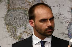 Circula na internet um vídeo com recortes de vários trechos de uma conversa do deputado federal Eduardo Bolsonaro (PSL-SP) com 'The Epoch Times' em que o parlamentar escorrega no inglês. O filho 'zero-três' do presidente, anunciado embaixador nos EUA, chega a soltar um “deu branco”. A entrevista foi publicada originalmente pelo American Thought Leaders, do conservador Epoch Times, em março. ➤ O filho do presidente Jair Bolsonaro é cotado para ser embaixador do Brasil em Washington, nos Estados Unidos, o que tem gerado duras críticas. De acordo com o ministro do Supremo Tribunal Federal Marco Aurélio, a indicação do parlamentar para a embaixada norte-americana pode ser classificada como nepotismo (veja aqui).