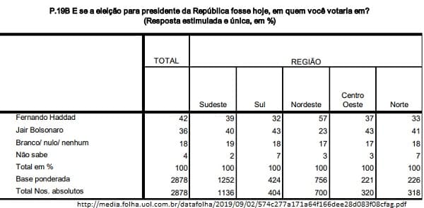 Para arrependidos tardios, hoje Bolsonaro 'perde' e Haddad 'vence' em todas as regiões