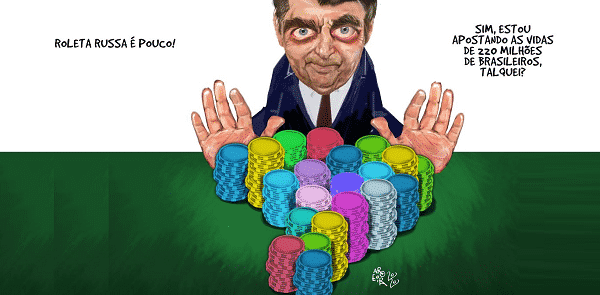 O general Hamilton Mourão disse que Jair Bolsonaro “se expressou mal” na rede nacional de televisão e que a posição do governo é a de quarentena severa e geral. É, foi “erro de redação” dizer que as escolas e o comércio tinham de funcionar, não é, general? >>> Já logo aparecem os “epidemiologistas” da equipe de Paulo Guedes, seguindo a “teoria Trump”, e dizem que no dia 7 de abril tudo poderá começar a voltar ao normal. Base científica? “Eu acho que as empresas querem”. >>> O ministro da Saúde, que tanto apoio recebeu, vai se revelando um poltrão, e até a abertura das igrejas – que sacerdotes e pastores lúcidos condenaram – defende, como se Deus estivesse com uma estas raquetes elétricas, destruindo todos os vírus que circulam em aglomerações. >>> O presidente da Câmara, Rodrigo Maia, foi ao ponto, ao dizer que “Bolsonaro mudou de postura por pressão de investidores da bolsa”. “Acho que a gente tem que sair desse enfrentamento sobre abrir ou não abrir, sair do isolamento ou não sair, porque isso nada mais é do que a pressão de milhares de pessoas que aplicaram seus recursos na Bolsa, acreditaram no sonho, na prosperidade da Bolsa a 150 mil pontos. Ela está a 70 mil por vários problemas. E a gente não pode deixar de cuidar das pessoas pelo fato de um grupo estar perdendo dinheiro na Bolsa de Valores”, disse. >>> É assim que estão querendo discutir as medidas preventivas, com base nos interesses econômicos. O país está entregue a uma camada de gente má, disposta a trocar vida por lucros.