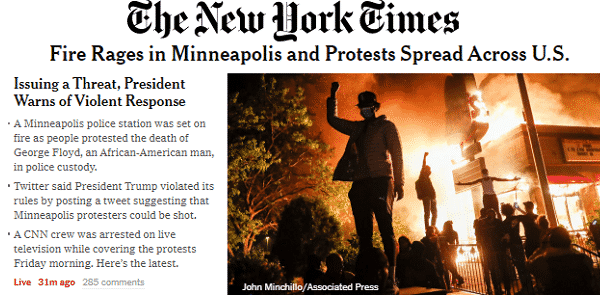 Donald Trump disse que está disposto a colocar o Exército para reprimir as manifestações violentas que explodiram em Minneapolis, no estado de Minnesota, nos EUA, em protesto contra o estrangulamento, em plena rua, de um homem negro. desarmado, já dominado e algemado, por um policial branco. >>> “Acabei de falar com o governador Tim Walz e lhe disse que o Exército está com ele o tempo todo. Qualquer dificuldade e assumiremos o controle, mas, quando os saques começarem, os tiros começarão ”, tuitou Trump, fazendo com que a provedora do microblog colocasse uma advertência de que aquilo poderia ser “a glorificação da violência”. >>> Com 40 milhões de desempregados no país, uma condução confusa da crise do coronavírus e uma tensão com a China que torna mais sombria a retomada da economia, Trump vive um de seus piores momentos de popularidade, com uma média de 54% de reprovação contra 44% de aprovação. >>> Não duvidem que a “manutenção da lei e da ordem” vire uma bandeira eleitoral substituta ao “Make América Great Again” que fracassou rotundamente e de ter-se demonstrado que a miraculosa cloroquina também deu em fiasco. >>> Como, no Brasil, vivemos uma situação onde as semelhanças não são mera coincidência, é bom nos cuidarmos para que atos estatais de violência não acabem por provocar revoltas que inspirem nossa versão tupiniquim a tomar o mesmo caminho.